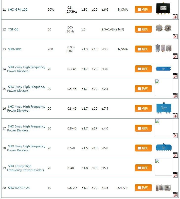 功分器/合路器详细内容可复制连接:http://www.shx-sh.com/upfiles/20147211464642.pdf